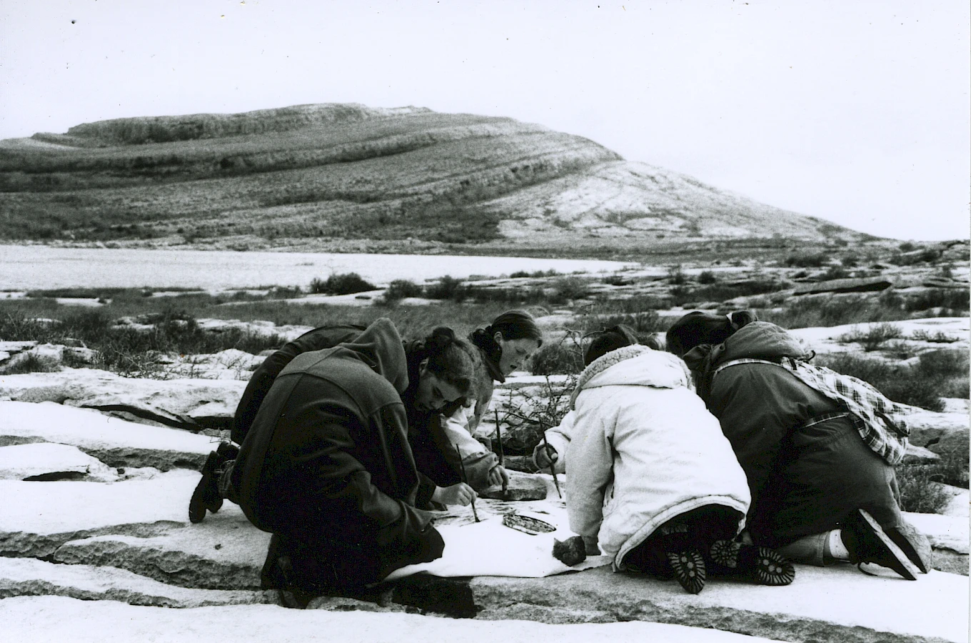 Deirdre O'Mahony marking the shadow of an Erratic, 1995. Photograph: Veronica Nicholson. Courtesy the artist