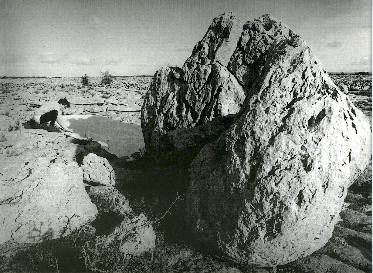 Sebastian Cichocki: In our recent dialogues and collaborations, most notably at Floating University in Berlin and EVA International in Limerick, we have toyed with the term ‘postartistic’ to describe a significant shift in contemporary cultural landscapes. The term has its roots in the writings of the Polish theorist Jerzy Ludwiński, who in the 1970s forecast a postartistic era in which art would undergo a process of dissemination, eventually becoming inseparable from other areas of life such as ecology, politics and social systems. This ‘blue phase’, as Ludwiński called it, was not to be the end of art, but rather its expansion into the very fabric of reality.1 Looking at the ‘evolution’ of your work – Ludwiński frequently referred to evolution when comparing the art system to a living organism adapting to new habitats – I see the fulfilment of this prophecy: art connecting different disciplines and areas of expertise. If we consider your artistic journey from the Erratics series – works I consider to be the entry point to your later practice, in which you meticulously traced the shadows of glacial boulders in the Burren – to your current soil-based interventions, a clear, symptomatic shift is evident: you have moved from painterly contemplation to situated engagement. Was there a specific moment when you decided to move from two-dimensional representation to working at a 1:1 scale in the field?