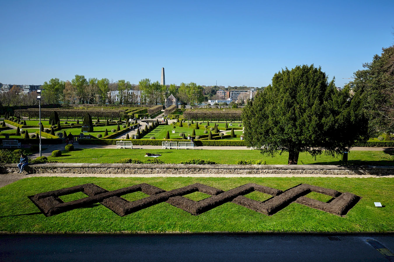 DO’M: SPUD was a way of thinking through the trauma of the Great Famine in Ireland, the relationship between tacit knowledge, heritage and aspects of the present-day social and economic legacy of the Famine. Using the potato was a way to think through histories of hunger, survival, and food security: once prized as offering the possibility of freedom from recurring cycles of famine, the tuber is also a reminder of the consequences of our lethal dependency on monoculture, as well as the systematized violence, biopolitical power and famine that are still deployed today as tools for colonial expansion, for example in Gaza. It was also a useful way to think about urban food security; potato ridges are a great way to break new ground and turn grass into vegetable plots. Asked to make a temporary famine memorial at the National Irish Famine Museum, I decided to make another cross, or ‘X’, on the same scale as in The Cross Land, but from potato ridges. This was my introduction to the Loy Association of Ireland, a group from across Ireland drawn together by a shared interest in maintaining the skill of using a loy, or foot plough, to make perfectly straight potato ridges. The group regularly compete in agricultural shows and ploughing championships. In recent years they have been marginalized at these events in favour of agricultural machinery and agri-industrial trade stands. One of the issues I have experienced in making these projects is that I’m neither a farmer nor a particularly knowledgeable gardener, so each proposal becomes a test of amateur knowledge, creating space for participants’ expertise to come to the fore. I see this as practice-based learning for those involved with the project, a way to process ideas that cannot find space within singular disciplinary fields. I was invited to make a proposal as part of ‘A Fair Land’ (2016), a Grizedale Arts project at IMMA, as part of the centenary celebrations of the formation of the Irish State. Called The Village Plot (2016), my proposal drew on the history of the IMMA building and my research into Antoine-Agustin Parmentier, the eighteenth-century apothecary of Les Invalides in Paris. Les Invalides inspired the construction of the Royal Hospital Kilmainham, which now houses IMMA; Parmentier was a passionate advocate for the potato as a food that could help alleviate periodic famines when wheat and grain crops failed. Taking this architectural correspondence as a starting point, I proposed to make a potato garden with members of the Loy Association. This was inspired by the use of the Luxembourg Garden to grow potatoes, with the encouragement of Parmentier, in a period of famine after the French Revolution.