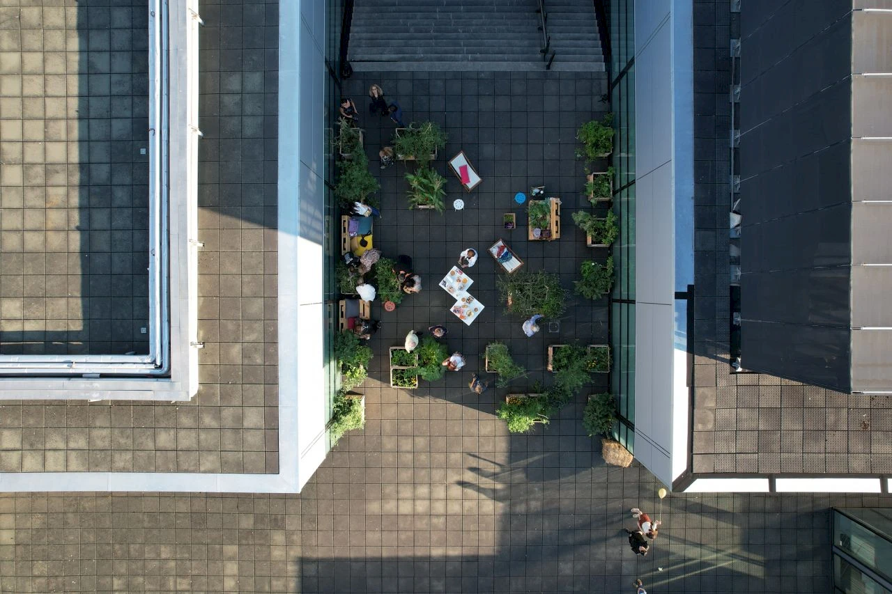 Just like the museum roof was once an unused and hidden resource and is today the museum garden – a place of care, learning, and meeting – the residents are invited to identify similar hidden, neglected or unrecognised resources in the museum’s immediate surroundings – spatial, social, environmental, or temporal – and to study them through shifting the focus, an act of attention, or temporary intervention that makes the invisible visible. We are interested in the manners in which they observe, react, and enter into that which is collective – through action, gesture, stroll, talk, workshop, or temporary activation (or deactivation) of space, which stimulates new views, creates new relationships, or discovers new strata of meaning. The residency is therefore oriented on the process, meeting and exchange, and not on the production of a permanent or exhibitive result.