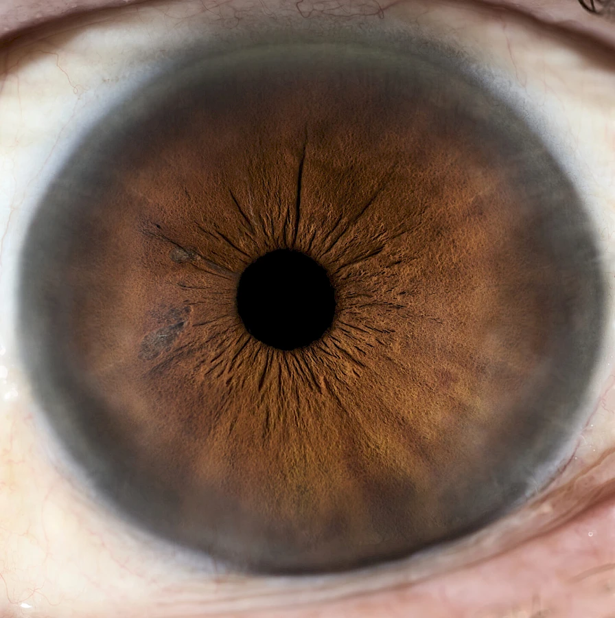 Luther is now beginning to crumble and fill with my writing, some of the earliest of which I created during last year’s holy days of Teshuva in Warsaw two weeks before 7 October, such as the above-mentioned phrase – akin to a huge bloodshot eye – transcribed when standing, mesmerized, some distance from Joanna’s light box, We live day by day, hour by hour, minute by minute (The Eye of Krystyna Budnicka/Hena Kuczer) (2023) in the exhibition, ‘Around Us a Sea of Fire. The Fate of Jewish Civilians During the Warsaw Ghetto Uprising’. We live day by day… is a 160:1 macro-scale photograph of the eye of Krystyna Budnicka, commissioned by the POLIN Museum of the History of Polish Jews for the eightieth anniversary of the Warsaw Ghetto Uprising. Budnicka, born and incarcerated by the Nazis as Hena Kuczer, is a lifelong Warsaw resident, retired schoolteacher, and the only known survivor of the Warsaw Ghetto Uprising still alive as of this moment.25 When I showed the photograph to the curator and philosopher Almut Shulamit Bruckstein Çoruh, she muttered to herself, Shahid… the witness. Shahid, I think I had known, more often from Arabic is translated as martyr, but Shulamit clarified that as in Hebrew this meaning is bound to and emerges from witness. When I saw Budnicka’s eye – pupil, iris, sclera and eyelids26 – before then, in the light box, in the exhibition, without yet Shulamit’s word, here is what I knew.