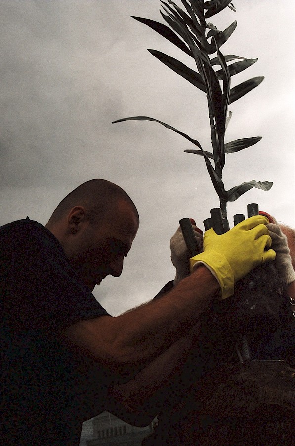 Greetings from Jerusalem Avenue (2022), installation of the fronds, 2003. Photo Joanna Rajkowska