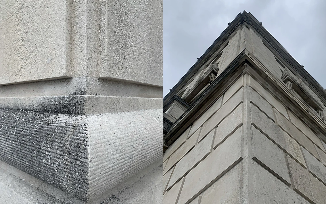 Janine Davidson Cornerstones, Parliament Buildings, Stormont, traces of camouflage from WWII, 'Landscape (post) Conflict', L’Internationale Museum of the Commons Summer School, 2025.
