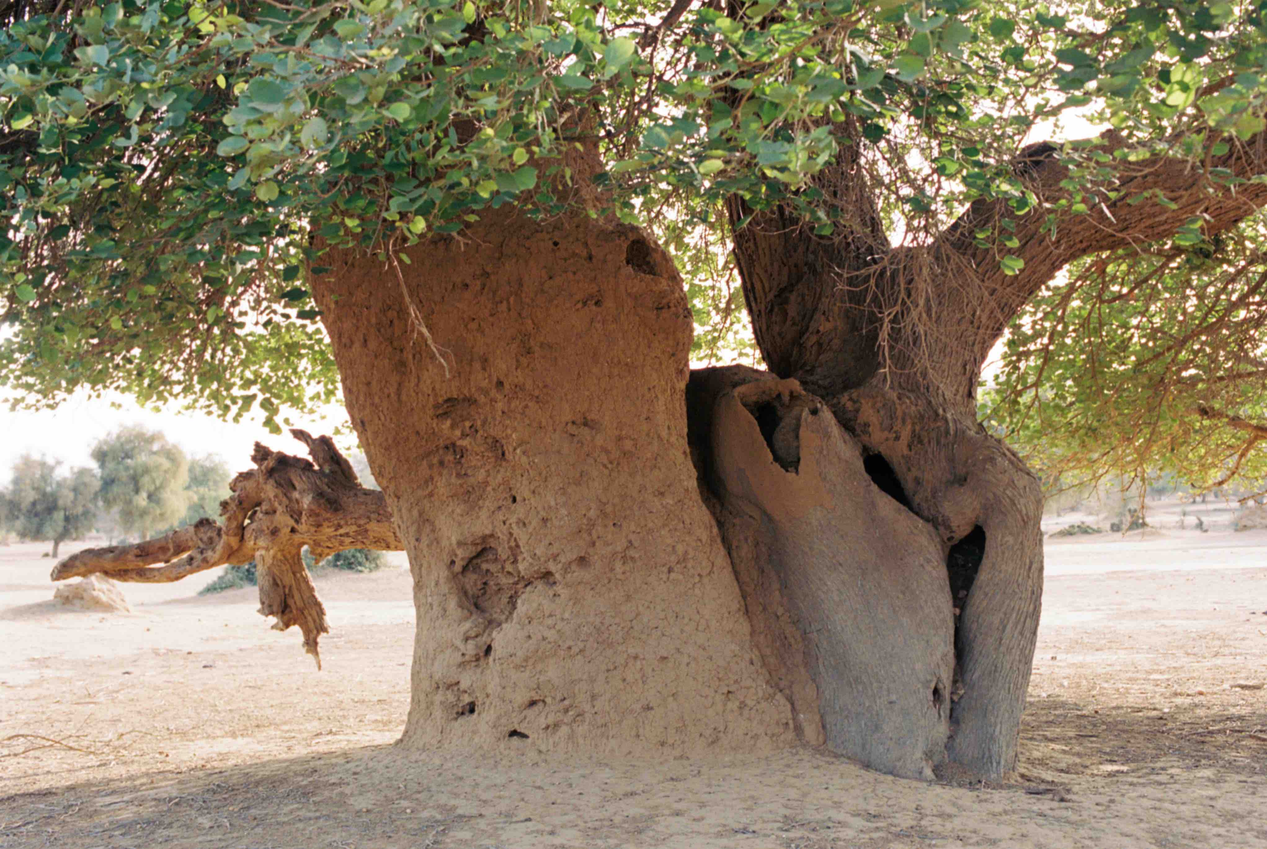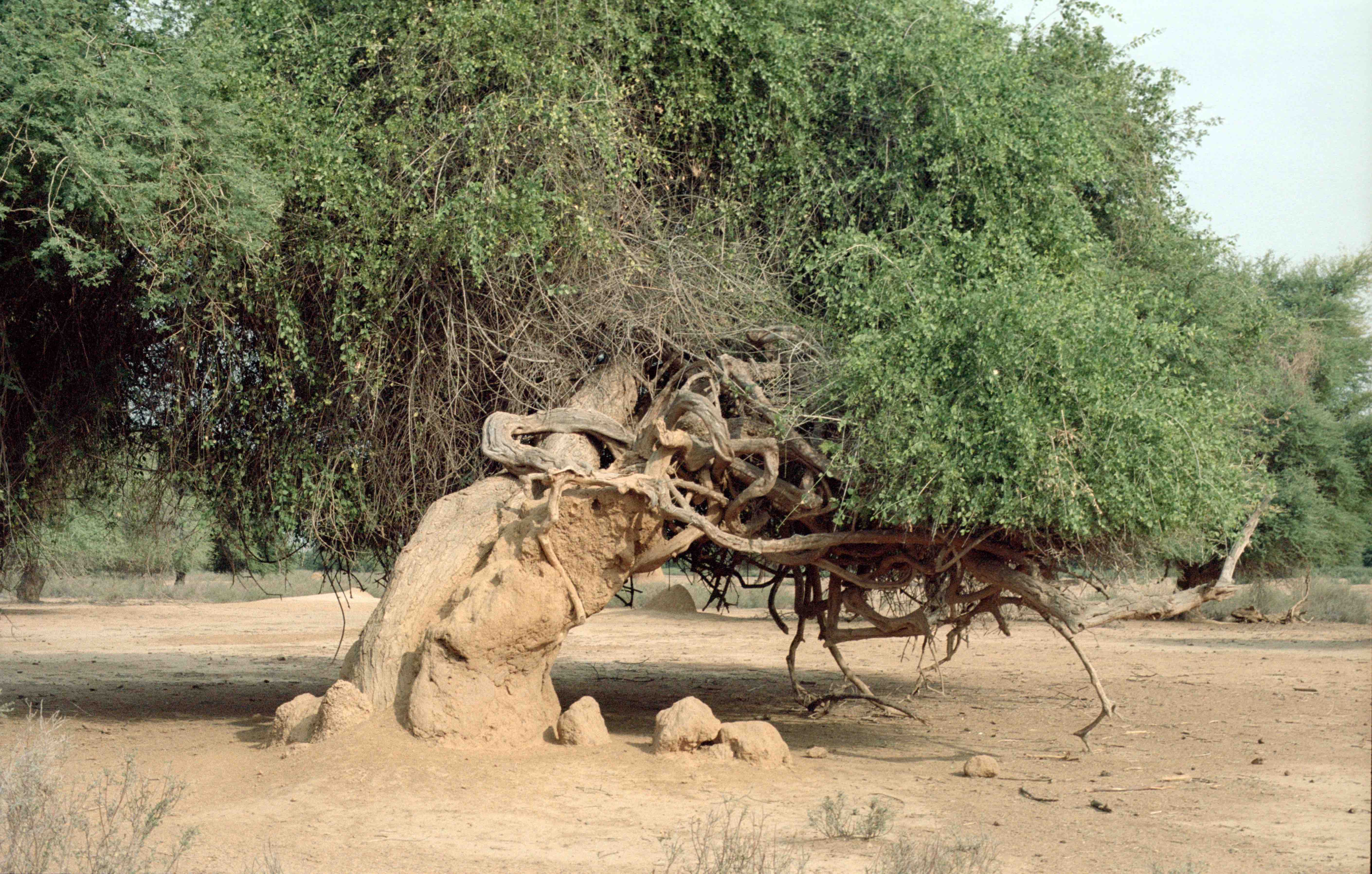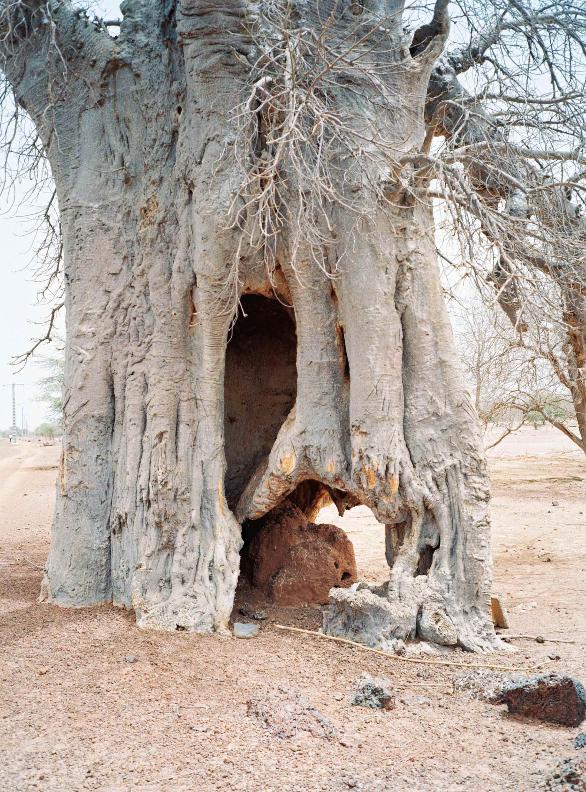 At some point, while driving, we stopped next to a giant tree-shaped shrub–termite mound: the trunk is the termite mound and the crown is the tree canopy. It is not possible to say how one is entangled with the other; they constitute a single whole, a world created by the coexistence of at least two living beings. These two are those that are visible, but many more remain inaccessible to the human eye.