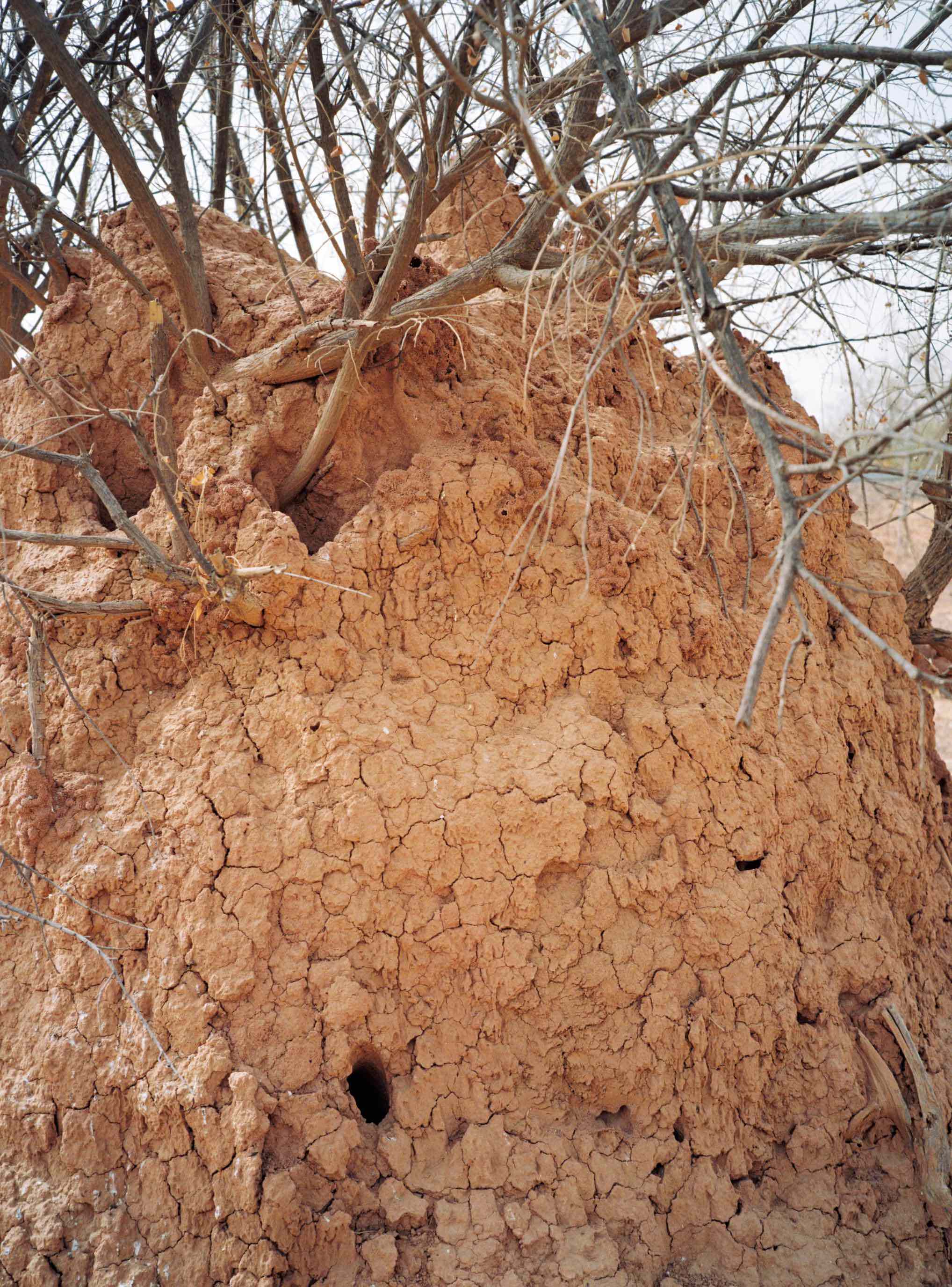 Kimmerer writes about the ‘web of reciprocity’ as a principle of existence where each living being has a particular role to play.15 The termite mound is a universe of cohabitation, a space of connection between sun, soil, plants and air. It is a complex system of relations, webs of reciprocity among living beings enacting different ways of living together that connect, protect and help, sharing space and nutrients. The mounds’ extraordinary protective architecture has inspired Sahelian mud architecture by humans.