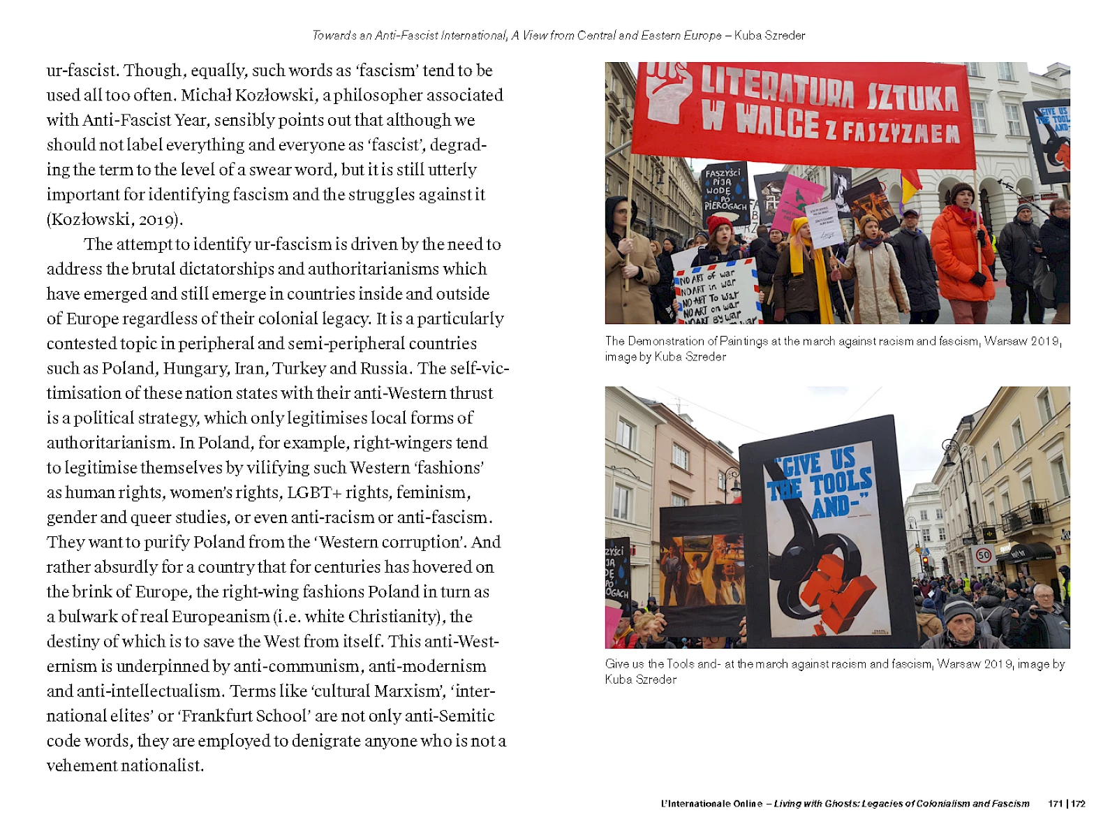 Living with Ghosts: Legacies of Colonialism and Fascism, is a constellation of essays, conversations and images that point to the manner in which the legacies of colonialism and fascism reverberate in our present conjuncture. The impulse for producing this issue was a question of whether it may be possible to trace the connections between the violences of the colonial project through the horrors of fascism to current forms of racism, identitarianism and populism – what we initially called 'an arc' of colonialism-nationalism-fascism.