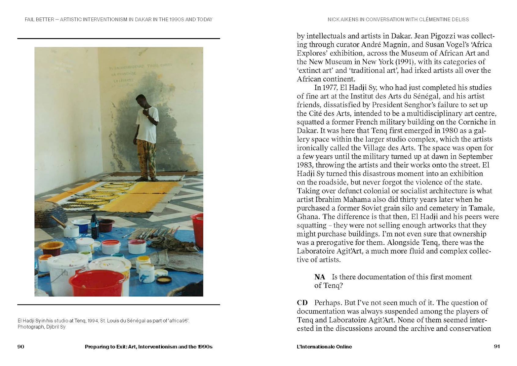 This collection of essays, interviews and images results from L'Internationale’s current focus on the 1990s and, in particular, our wish to identify actions and alliances from that era that form constellations with our own. Most optimistic claims made during that period were hubristic – not least the promise that technology and post–Cold-War politics would turn the world into a super-connected ‘global village’, and that the ensuing spread of civic society and liberal democracy would usher in ‘the end of history’. Cultural institutions – including the museums and galleries that compose the L'Internationale confederation today – were charged with the task of extending civic society and delivering an image of a common and inclusive future. Indeed, confederation members Museu d’Art Contemporani de Barcelona (MACBA), Museo Reina Sofía in Madrid, and Salt in Istanbul were created in the late 1990s and early 2000s to bolster civic life – a project that is ongoing. At the same time, many conflicts of the current era can be traced back to this period of considerable social and cultural turmoil. The after-effects of the collapse of the Soviet Union in 1992 reverberate with Russia’s war of aggression in Ukraine, as we write these words.