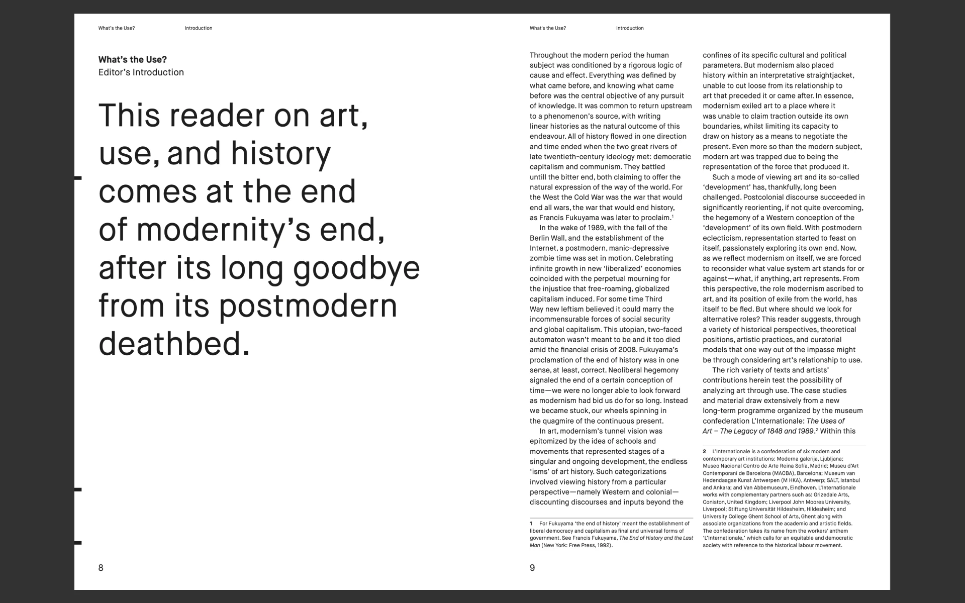 Is art only art insofar as it refuses to be useful? Or can art practices serve a wider purpose in the world? This reader starts from the premise that art is an integral part of the social, economic and political process. Art is best understood through its dialogue with the social sphere, rather than as a ‘thing in itself’. By mapping a diverse terrain of examples and ideas, this book explores the complex interplay between art, use, history, and knowledge. The contributing writers and artists — such as Georges Didi-Huberman, Tania Bruguera, Wendelien van Oldenborgh, and Stephen Wright — demonstrate how in past and contemporary practice these relationships are set up and played out.
