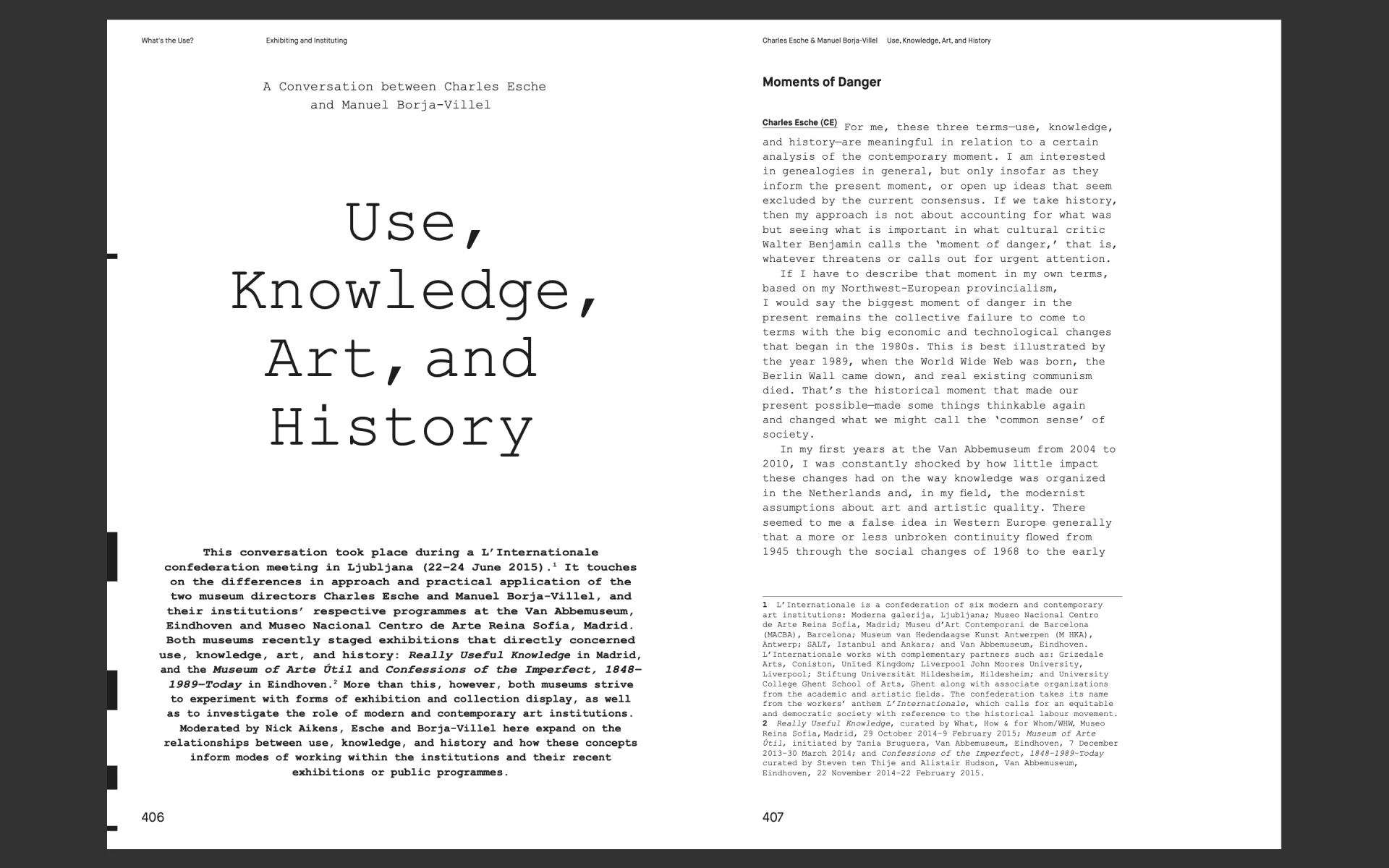 Contributors: Nick Aikens, Christina Aushana, Zdenka Badovinac, Manuel Borja-Villel, Tania Bruguera, John Byrne, Jesús Carrillo, Christina Clausen, constructLab, Tamara Díaz Bringas, Georges Didi-Huberman, Charles Esche, Annie Fletcher, Lara Garcia Diaz, Liam Gillick, Melinda Guillen, Jeanne van Heeswijk, Alistair Hudson, Thomas Lange, Li Mu, Wendelien van Oldenborgh, Trevor Paglen, Manuel Pelmuş, Emily Pethick, Alexandra Pirici, Laurie Jo Reynolds, Adrian Rifkin, John Ruskin, Lucía Sanromán, Catarina Simão, Sara Stehr, Subtramas, Steven ten Thije, WHW (What, How & for Whom), Stephen Wright, and George Yúdice.